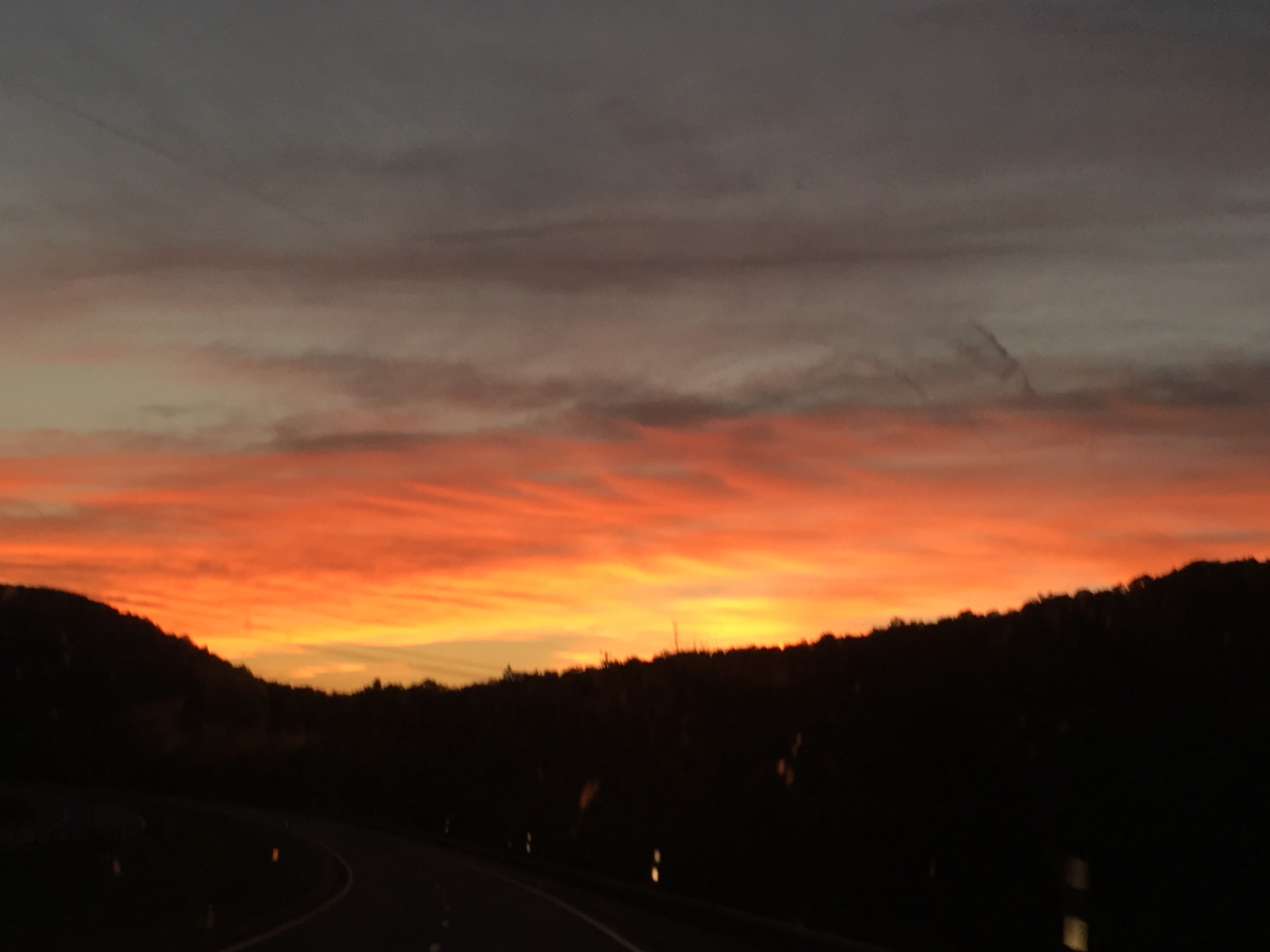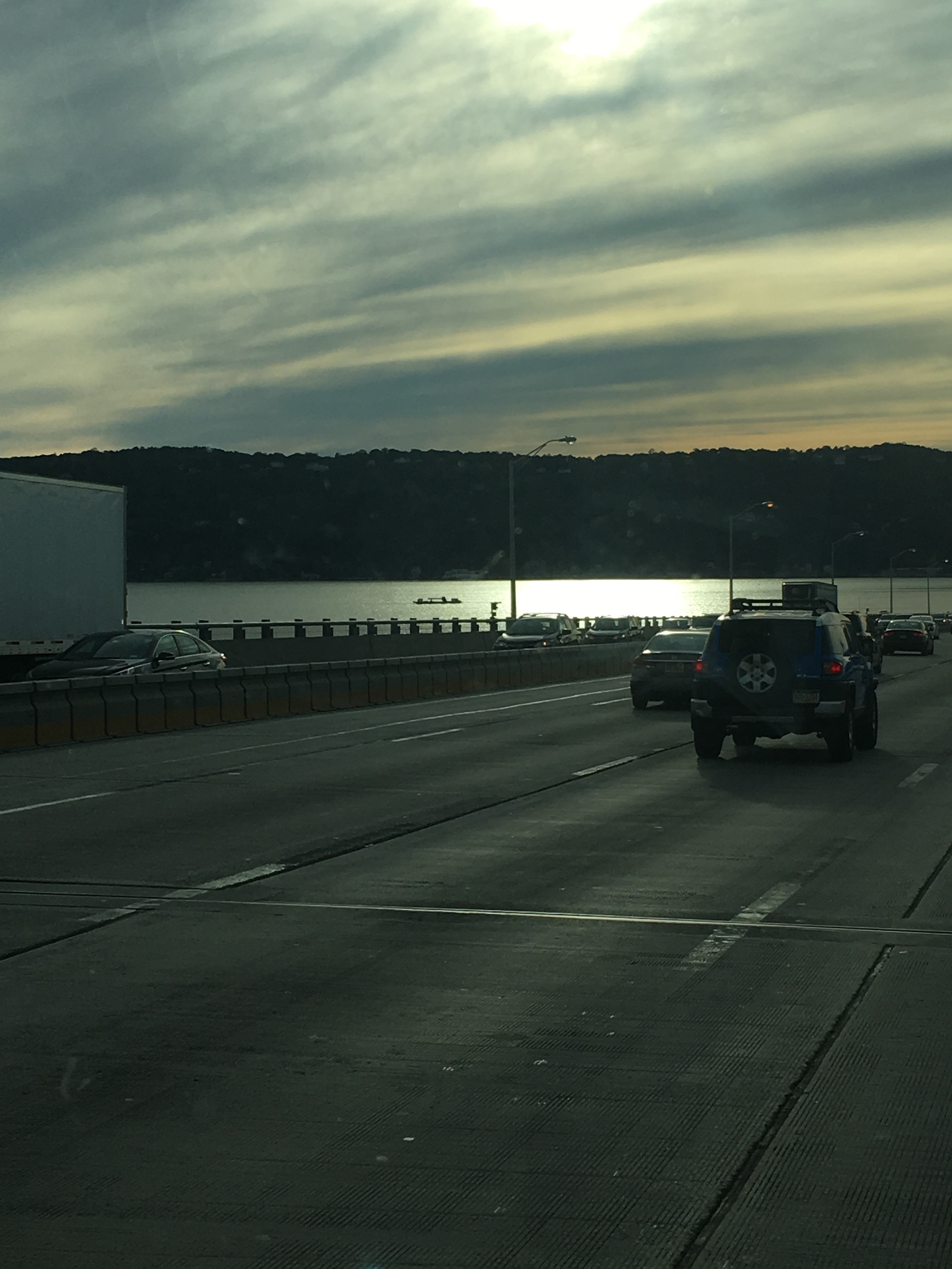 Crossing the Hudson River on the Tappan Zee BridgeFiery sunset in the CatskillsWe’re a little early for the autumn colors…still very beautiful.A BART train en route to the Bay Area.  They have a long drive ahead, too!