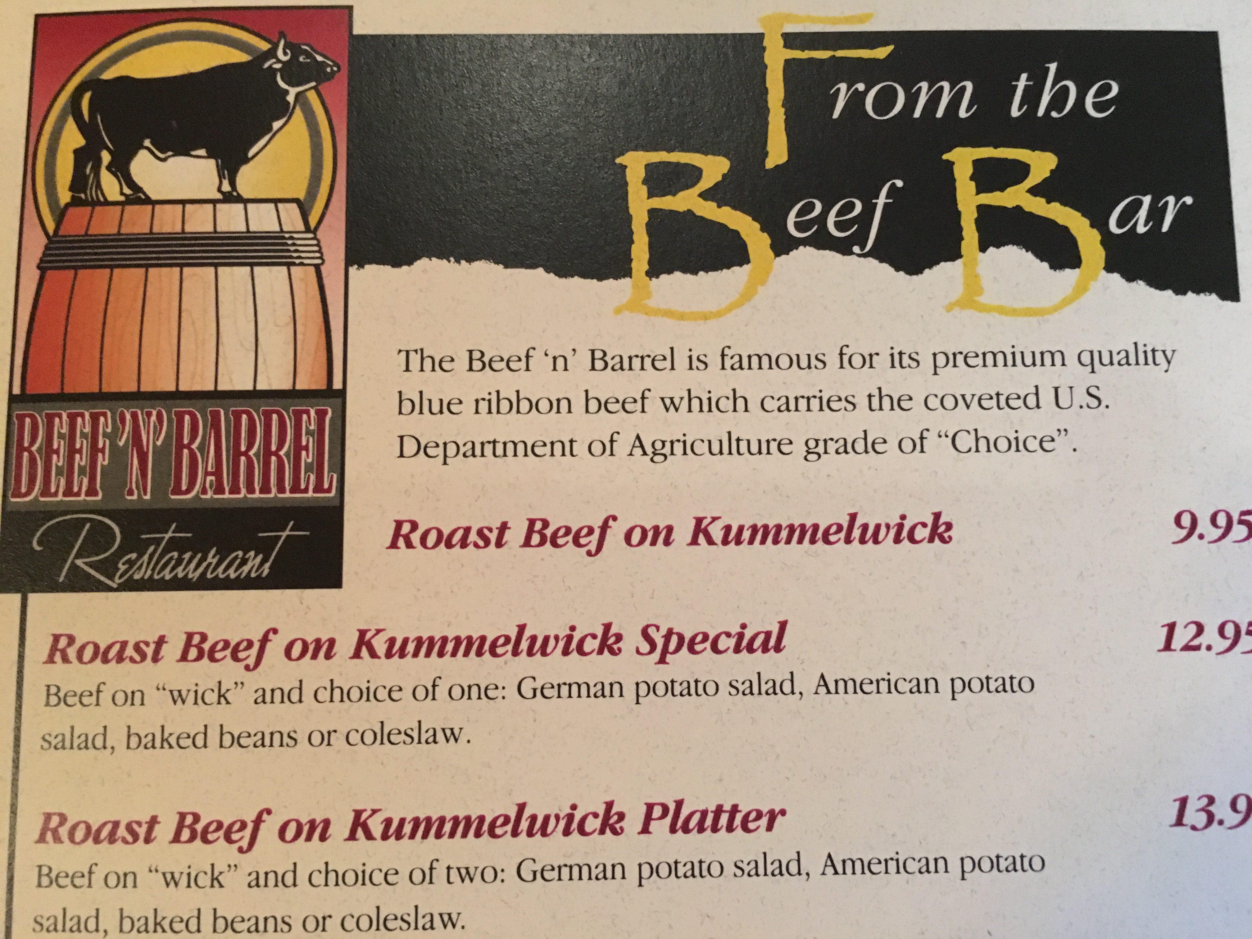 Our visit would not be complete without a “Beef on Wick” and we were lucky K.C. was working at the Beef and Brew to serve us lunch. Delicious with horseradish!