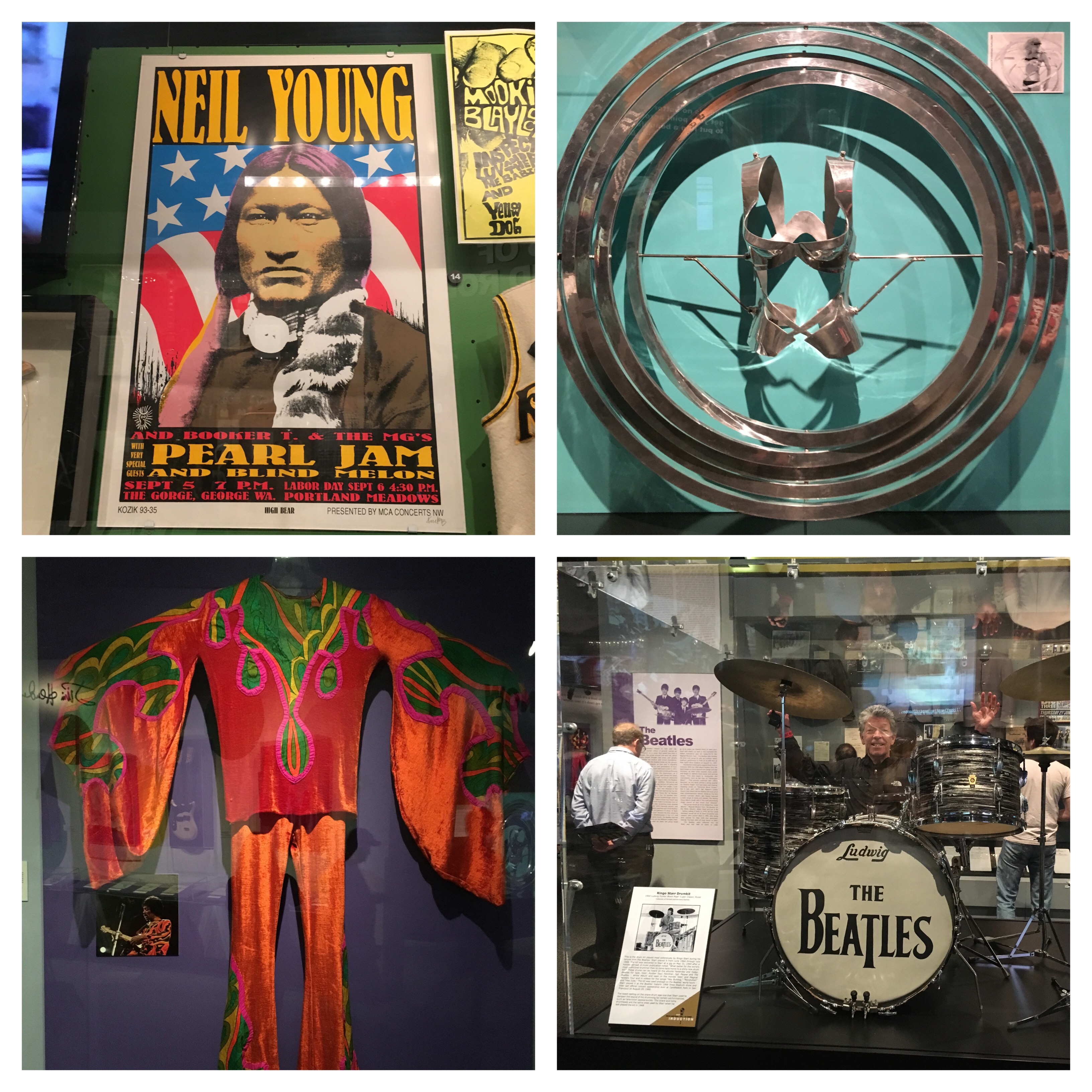 What a place!!! The building is expansive and incredible and right on Lake Erie. It resembles the Louvre. I.M. Pei designed them both. Multi floors of fabulous exhibits covering the roots of rock and roll music and every generation and geographic influence of the genre. Here are just a few photos.