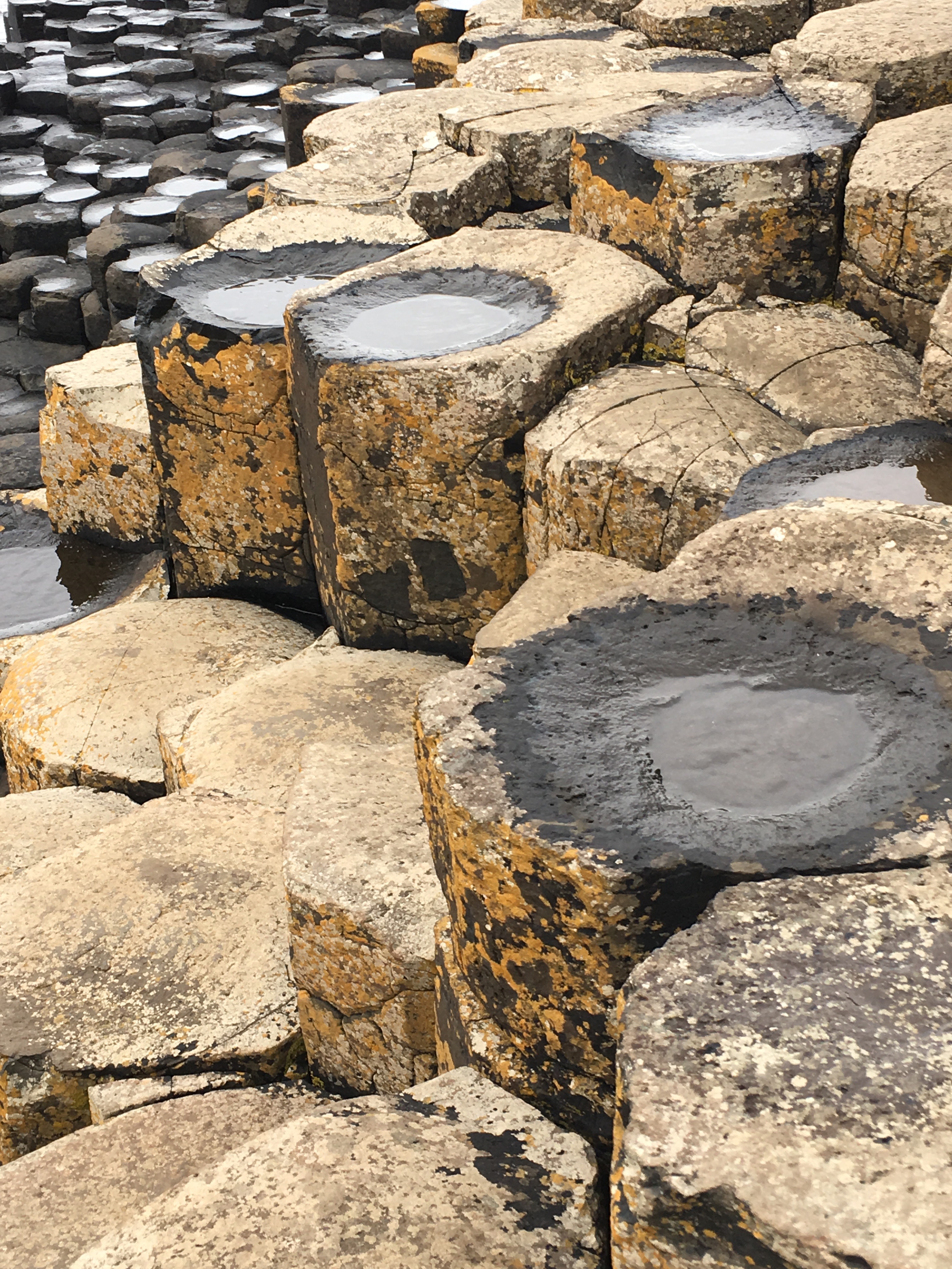 Then on to the Giant’s Causeway, a UNESCO World Heritage site. The six sided basalt columns run throughout the Causeway forming stair steps and amazing features.