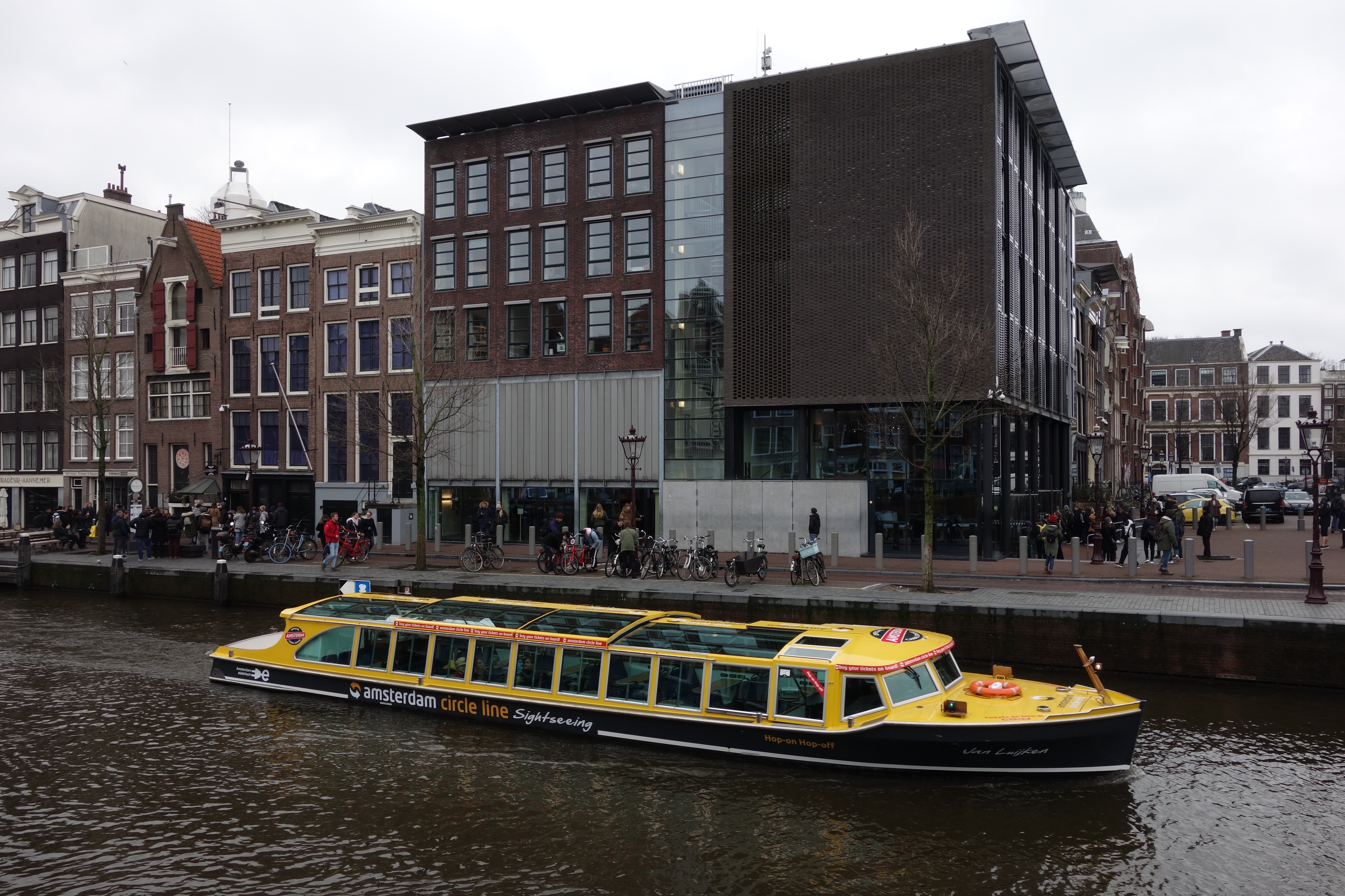 We are staying in the black canal boat on the right. It is on Bloemgracht Canal. Met by the owner Jaap and his 3 year old son James. They brought us some Stroopwafels(yummy cookies) and a nice bottle of wine. James is ADORABLE! He was telling us (in Dutch) all about the cookies, the heater, the shampoo and body wash in the bathroom, and pointing out all the boat’s features. Perfect central location across the canal bridge from the Ann Frank House